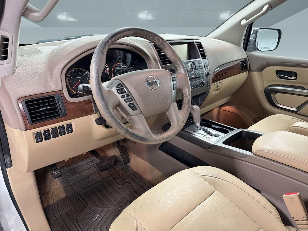 Boasts 19 Highway MPG and 12 City MPG! This Nissan Armada delivers a Regular Unleaded V-8 5.6 L/339 engine powering this Automatic transmission. PEARL WHITE, ENGINE: 5.6L DOHC 32V ENDURANCE V8 W/FFV -inc: E85 compatible, ALMOND, LEATHER-APPOINTED SEAT TRIM -inc: Front and 2nd row seats.